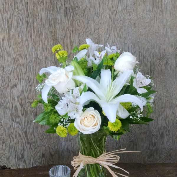 “Love, Love, Love the flower arrangement. The roses are very large and beautiful. Ordering and delivery was perfect as well. So glad we have this wonderful florist in our little downtown.”
