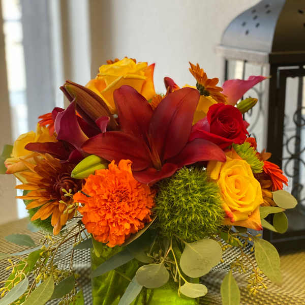 Stunning fall colored bouquet. Best friend loved them.