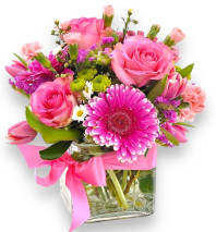Make them blush with this lovely bouquet. Light and hot pink roses and light pink asiatic lilies accent our elegant Pink Reflections vase.