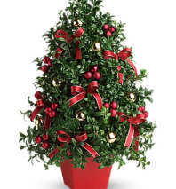 Make them merry with this sweet bouquet! Red carnations and white carnations are beautifully presented in our bright red glass cube