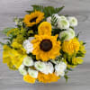 Pitcher Perfect is A Ladybug Floral exclusive bouquet that includes sunflowers, roses, alstromeria, button mums, mini carnations, solidago and monte casino. All arranged in a 7.5” FDA-approved yellow ceramic pitcher.