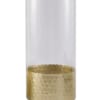This stunning arrangement is designed in a large, clear cylindrical glass vase featuring an elegant gold honeycomb–wrapped base. The vase measures approximately 5.4" in diameter and 11.75" in height. Romantic blooms such as soft champagne roses are paired with seeded eucalyptus and vertical accents of snapdragons or stock flowers to create graceful height and dimension. The design is further enhanced with plumes of ornamental grasses and complementary seasonal florals, resulting in a luxurious and airy arrangement that will impress.