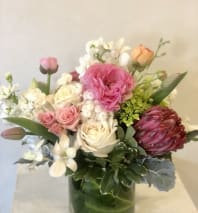 In some instances, the florists’ photo may represent an overall theme or look and include a one-of-a-kind vase which cannot be exactly replicated. Although the actual bouquet may not precisely match the photo, its temperament will. Occasionally, substitutions of flowers or containers happen due to weather, seasonality and market conditions which may affect availability. If this is the case with the gift you've selected, the local florist will ensure that the style, theme and color scheme of your arrangement is preserved and will only substitute items of equal or higher value.
