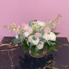 This is an Adee's original sympathy arrangement. We wanted to capture the essence of love transcending space and time, and emphasize that our loved ones are always around us even if they have departed. This arrangement is made with white and blush blooms, fragrant eucalyptus and stock, and timeless carnations.