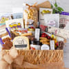 1 Gourmet Flatbread, 2 Gourmet Cheeses, 1 Gourmet Sausage, 1 Dipping Pretzel, 1 Red Pepper Jelly, 1 Gourmet Popcorn, 1 Gourmet Cookie Box, 1 Toffee Treat, 1 Chocolate Bar, Assorted wrapped chocolates, 1 Gourmet Nuts, 1 Organic Dried Fruit Mix