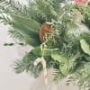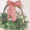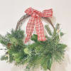 Wreath is available in one size. Decorated with Christmas greenery, ribbons, & Christmas ornaments! Perfect for this season and for your door!