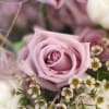 A soft gentle Lavender Ivory color palette create by 2 dozen garden picked rose and double tulip with assorted bloom create a graceful and elegant look with a wild grass touch. This arrangement perfect arrange in 8" round bowl vase, It delivered with gift box and greeting card
