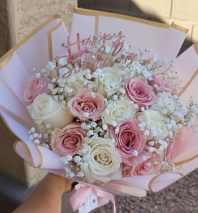 8 roses plus fillers and greenery