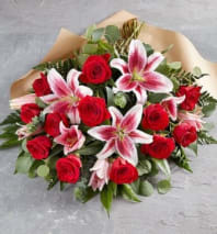 A timeless expression of love and elegance, the Red Velvet bouquet features beautiful red roses paired with soft complementary blooms and delicate accents, all hand-wrapped in modern presentation paper and finished with a satin ribbon. Designed to feel full, romantic, and effortlessly elegant, this bouquet is perfect for Valentine’s Day, anniversaries, or any moment worth celebrating.