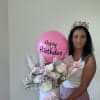 A modern and stylish floral arrangement presented in a chic box with a Bobo balloon. Available in various color palettes and sizes. Great for birthdays, anniversaries, or hostess gifts.