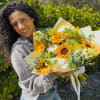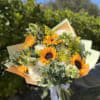 Sunshine Bloom is a joyful, radiant bouquet designed to brighten any day. Featuring vibrant sunflowers paired with soft white blooms, fresh greenery, and delicate seasonal accents, this arrangement feels warm, cheerful, and full of life.
