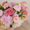 Soft, romantic, and effortlessly graceful—"Enchanted" features lush pink peonies, delicate ranunculus, premium roses, lisianthus, and hydrangeas in dreamy shades of blush and pinks. Arranged in a vintage-inspired pink ceramic vase, this design brings timeless beauty to any occasion—perfect for anniversaries, birthdays, or simply showing love.