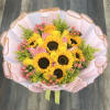 Buyer will receive a beautiful bouquet with sunflowers, yellow and pink roses, coffee beans.