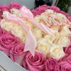 A luxurious heart-shaped box featuring Pink And White roses, crafted to celebrate Mom with elegance, love, and unforgettable beauty