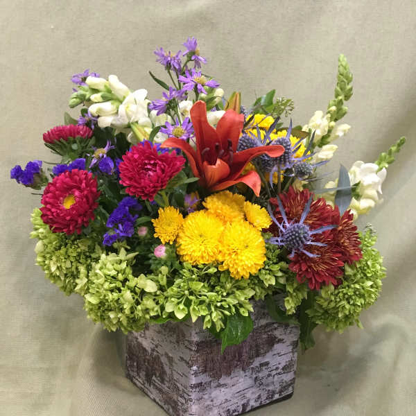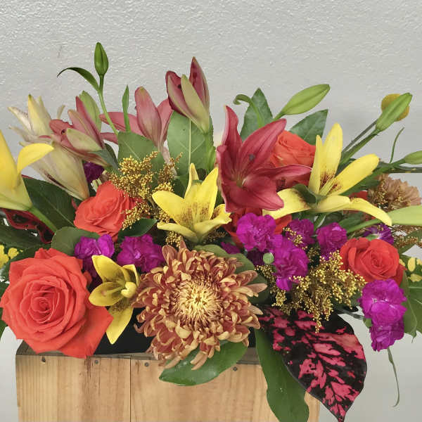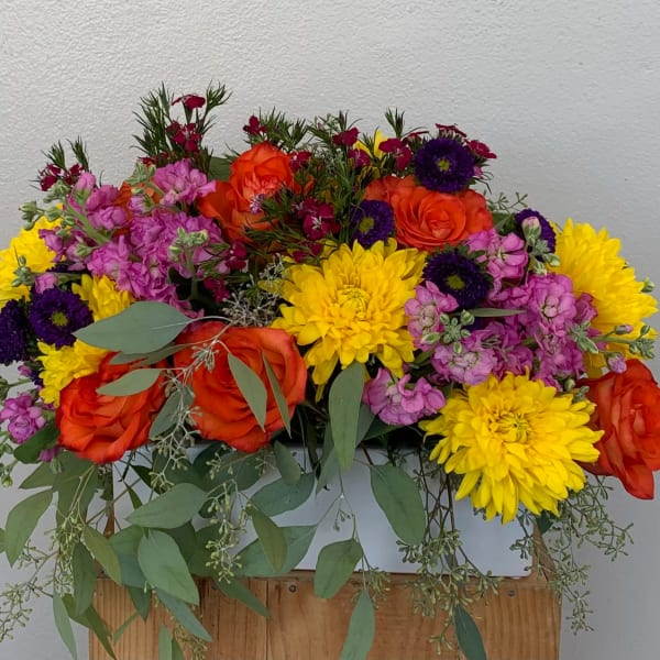 Beautiful arrangement, colorful and plentiful flowers. Just exquisite.