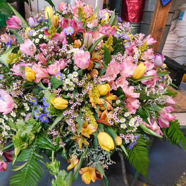 I know that the arrangement has to depend on what you have on hand but the picture I received on what was made was kinda disappointing. More just white flowers and mostly daisies without green tones. I was expected more for selecting the biggest more expensive selection.