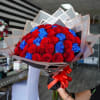 A bold bouquet of red and blue long stem roses, beautifully wrapped for a modern, unforgettable look. Perfect for love and romance occasion, just because and congrats.