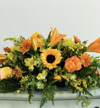 Our 24" standard table centerpiece with oranges and yellows