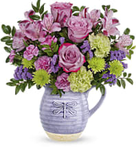In some instances, the florists’ photo may represent an overall theme or look and include a one-of-a-kind vase which cannot be exactly replicated. Although the actual bouquet may not precisely match the photo, its temperament will. Occasionally, substitutions of flowers or containers happen due to weather, seasonality and market conditions which may affect availability. If this is the case with the gift you've selected, the local florist will ensure that the style, theme and color scheme of your arrangement is preserved and will only substitute items of equal or higher value.