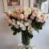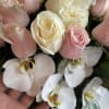 Luxury vase with a favorite touch of pink and white roses, perfectly suited for mom, with a beautiful white orchid.