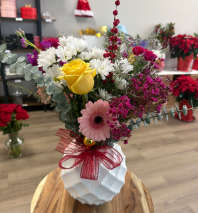 In some instances, the florists’ photo may represent an overall theme or look and include a one-of-a-kind vase which cannot be exactly replicated. Although the actual bouquet may not precisely match the photo, its temperament will. Occasionally, substitutions of flowers or containers happen due to weather, seasonality and market conditions which may affect availability. If this is the case with the gift you've selected, the local florist will ensure that the style, theme and color scheme of your arrangement is preserved and will only substitute items of equal or higher value.
