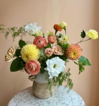 In some instances, the florists’ photo may represent an overall theme or look and include a one-of-a-kind vase which cannot be exactly replicated. Although the actual bouquet may not precisely match the photo, its temperament will. Occasionally, substitutions of flowers or containers happen due to weather, seasonality and market conditions which may affect availability. If this is the case with the gift you've selected, the local florist will ensure that the style, theme and color scheme of your arrangement is preserved and will only substitute items of equal or higher value.