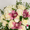For those seeking an extra touch of sophistication, consider our upgraded option – the Olivia Compact Bouquet. This variant remains true to the original design but introduces the exotic beauty of colorful cymbidium orchid blossoms, elevating the bouquet to a new level of elegance.