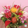 Here at Beretania Florist we specialize in beautiful premium flowers and unbeatable freshness. This bouquet is full of vibrant anthuriums, local protea and Hawaiian tropical favorites. This bouquet comes in a clear glass cube and includes a custom card message, provided by you!