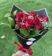 Our Best seller bouquet with a dozen red roses white hydrangea and sunflowers-