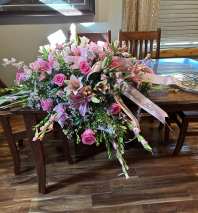 All pink floral from lilies to spray roses to standard roses, pink Gladiola, pink snap dragons