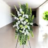 A graceful arrangement of white and green blooms designed to convey peace, comfort, and heartfelt sympathy. Perfect for honoring the memory of a loved one, this elegant display features roses, carnations, chrysanthemums, and lush greenery to create a serene and timeless tribute.