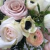 Roses, anemones, tulips, ranunculus and light greens are the perfect combination in this light, dreamy bouquet.