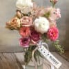 A smaller, yet super pretty arrangement placed in a smaller jar/vase (4 by 6"), full of lovely powder and blush colors, the perfect fashionable palette. The size is perfect for the coffee table or the bedside table. Roses of the prettiest nude colors mixed with pretty pastel flowers. Choose Deluxe for a fuller and larger arrangement with more flowers. Choose premium for the x-l version of the arrangement with even more flowers.
