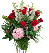 Let our designers create a stunning Valentine’s Day arrangement using a romantic mix of premium, red and pink blooms. This short full modern design is lush, compact and overflowing with seasonal florals, rich Valentines tones— perfect for making a bold yet elegant statement.