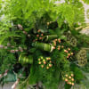 Maiden Hair Fern , Lotus Pods (Moss covered) , Hypericum , Pussy-Willow , Eucalyptus and Assorted Greens.
