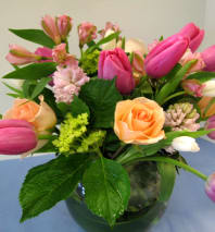In some instances, the florists’ photo may represent an overall theme or look and include a one-of-a-kind vase which cannot be exactly replicated. Although the actual bouquet may not precisely match the photo, its temperament will. Occasionally, substitutions of flowers or containers happen due to weather, seasonality and market conditions which may affect availability. If this is the case with the gift you've selected, the local florist will ensure that the style, theme and color scheme of your arrangement is preserved and will only substitute items of equal or higher value.