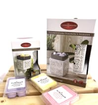 This stylish Mason jar wax melt warmer set comes with a full size plug in warmer, a wall plug Warmer and three packages of our soy wax melts in customers’ favorite scents. This set is perfect for a master bedroom and master bath or a kitchen and guest powder room. Plug in and bring wonderful fragrance to your loved ones home!