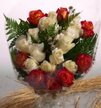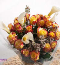 Flowers are delivered arranged and wrapped in a gift wrapping paper. Roses may take 2-3 days to open up as shown in product photo. Upon arrival, remove flowers from wrap, trim ends of stems, and place them in a vase with water, and enjoy your beautiful bouquet