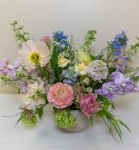 This arrangement is thoughtfully designed using the freshest flowers available for the season. While the overall look and palette will be honored, specific flowers may vary. Advance notice is requested for funeral arrangements due to the scale of these designs.