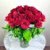 Elevate your Valentine’s Day by ordering The Majestic Love Bouquet! This grand arrangement features 36 exquisite extra-long stem premium red roses carefully chosen for their deep crimson hue and velvety petals complemented by lush jade green hydrangeas and elegant foliage arranged in a keepsake glass vase.