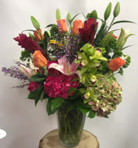 In some instances, the florists’ photo may represent an overall theme or look and include a one-of-a-kind vase which cannot be exactly replicated. Although the actual bouquet may not precisely match the photo, its temperament will. Occasionally, substitutions of flowers or containers happen due to weather, seasonality and market conditions which may affect availability. If this is the case with the gift you've selected, the local florist will ensure that the style, theme and color scheme of your arrangement is preserved and will only substitute items of equal or higher value.