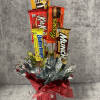 Unique Candy Bar Bouquet that pairs great with your flower-giving! Five popular candy bars (brands vary) adorn the candy bouquet decorated for a cheery gift! Upgrading is possible adding 2 candy bars per bouquet for additions. If your recipient wants particular candy bars, please request and we will try our best to make it super personalized!