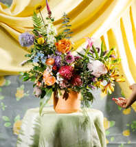 **Please note that Brooklyn Blooms move with the seasons, vessels, blooms, and foliage will vary from what you see in the photo. However, it will have the same beauty, uniqueness, and funky style. Please let us know in the florist notes if you have any color preferences, or special requests or love what's in the photo, otherwise, the Bloomies will make a tasteful decision for you! **