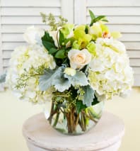 In some instances, the florists’ photo may represent an overall theme or look and include a one-of-a-kind vase which cannot be exactly replicated. Although the actual bouquet may not precisely match the photo, its temperament will. Occasionally, substitutions of flowers or containers happen due to weather, seasonality and market conditions which may affect availability. If this is the case with the gift you've selected, the local florist will ensure that the style, theme and color scheme of your arrangement is preserved and will only substitute items of equal or higher value.