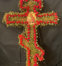 Beautiful arrangement. The crystal cross was a a nice addition.