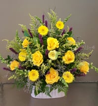 In some instances, the florists’ photo may represent an overall theme or look and include a one-of-a-kind vase which cannot be exactly replicated. Although the actual bouquet may not precisely match the photo, its temperament will. Occasionally, substitutions of flowers or containers happen due to weather, seasonality and market conditions which may affect availability. If this is the case with the gift you've selected, the local florist will ensure that the style, theme and color scheme of your arrangement is preserved and will only substitute items of equal or higher value.