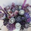 Compota ceramic vase beautifully designed with different shades of violet and lavender flowers and succulents