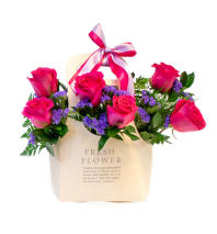 6 premium hand-picked red roses arranged neatly with care using premium greens in chic vase wrapped with Korean paper.