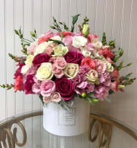 This Chocolato arrangement is made with Roses, Hydrangeas, Spray Roses and much more. The arrangement comes in a white square box.