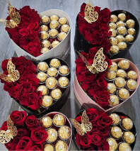 Fresh hand-tied roses wrapped with luxury floral papers accented with diamonds, butterflies or crown and ribbons.